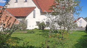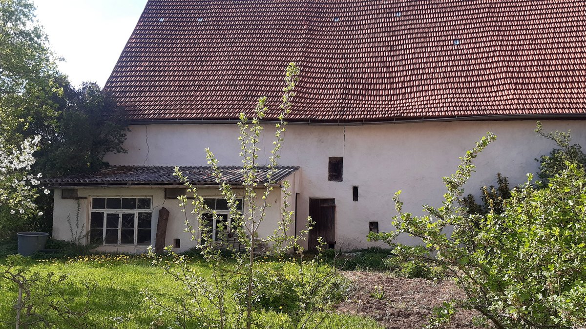 Große denkmalgeschützte Scheune mit einem kleinen Bauplatz. Die Scheune wurde teilweise in den 90er Jahren saniert. Die Hälfte des Daches müsste neu gemacht werden.