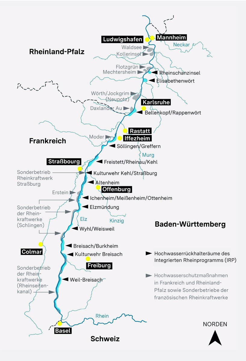 Die Verbesserung des Hochwasserschutzes am Oberrhein in der freifließenden Rheinstrecke zwischen Iffezheim und Worms ist aufgrund der gestiegenen Hochwassergefahr durch den Staustufenbau dringend geboten. Das IRP befindet sich mitten in der Umsetzung, eine Fertigstellung wird schnellstmöglich angestrebt. Eine Bereitstellung des vollständigen Retentionsvolumens wird in Anbetracht komplexer Genehmigungsverfahren und erforderlicher Bauzeiten nicht vor dem Jahre 2038 möglich sein.