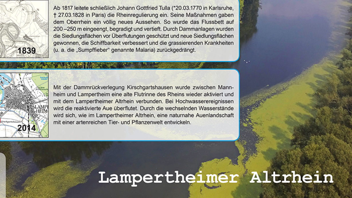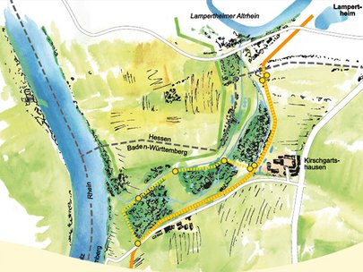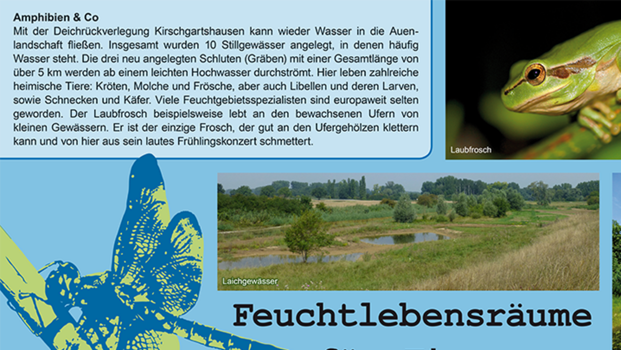 Am 1. Juli 2015 wurde der Infopfad Kirschgartshausen eröffnet. Auf acht Infotafeln können Sie mehr über das Bauprojekt und die naturnahe Entwicklung der Aue erfahren. Je nach Rheinwasserstand bieten sich interessante Ausblicke in die Auenlandschaft.