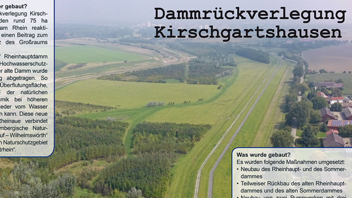 - Die Dammrückverlegung Kirschgartshausen verbessert lokal den Hochwasserschutz im Großraum Mannheim.