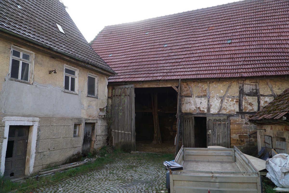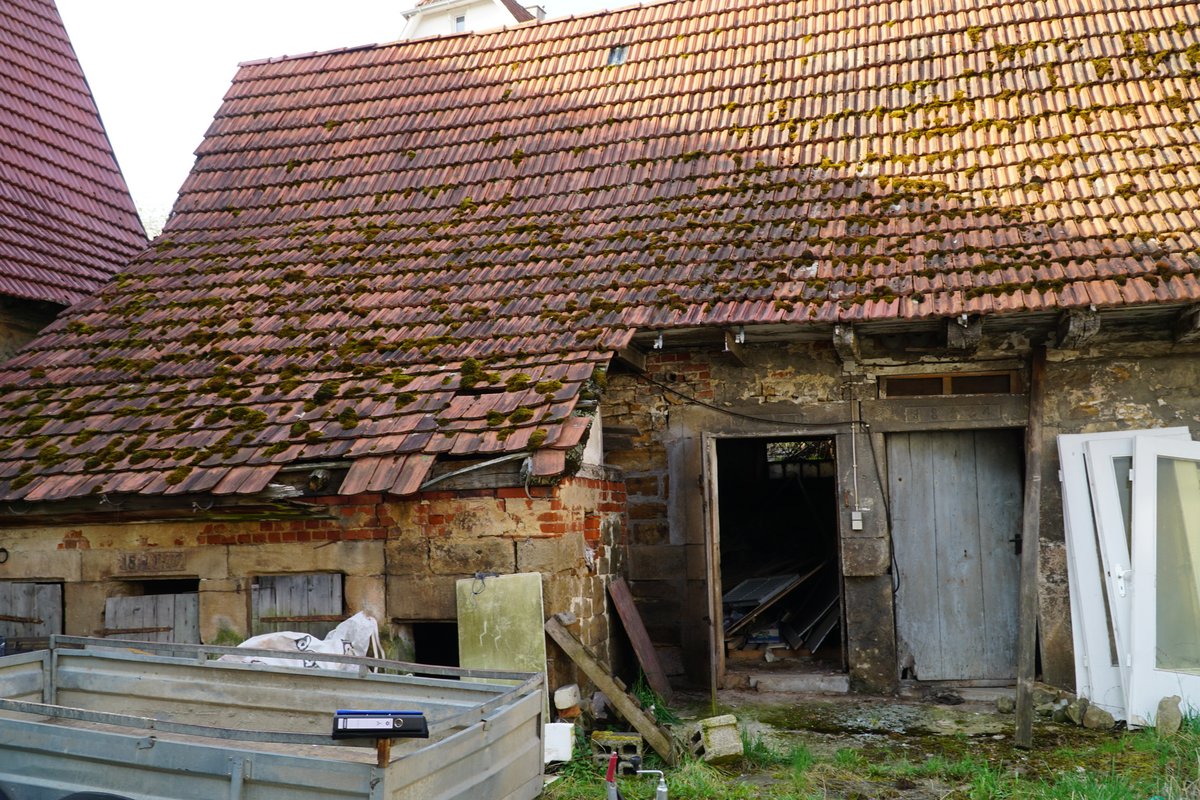 Wohnhaus vor 1808, Scheune wohl 18./19. Jh., Stallgebäude 19. Jh.