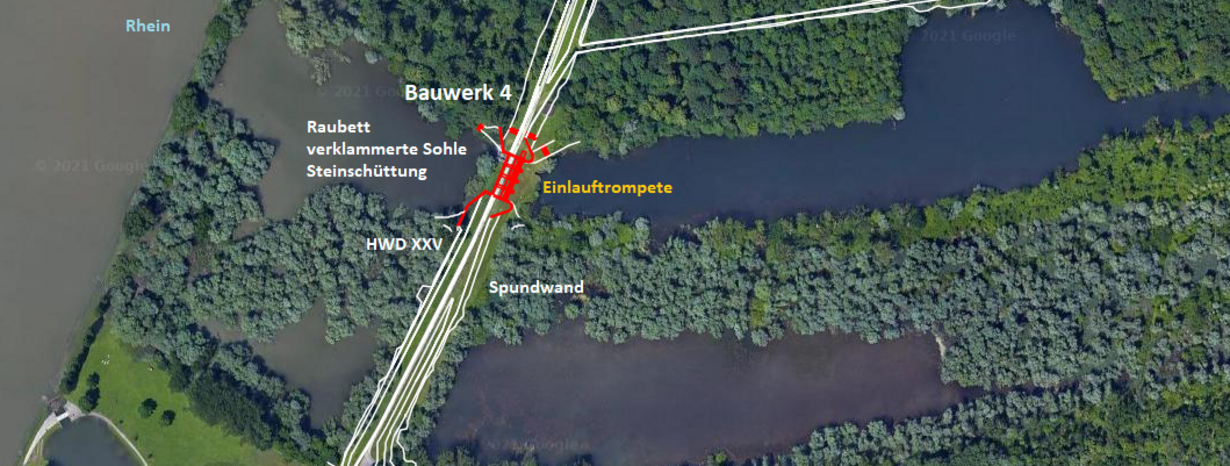 Das Bauwerk 4 liegt im Hauptdamm XXV an der bisherigen Nördlichen Rappenwörtschließe, die den binnenseitigen Rappenwörter Altrhein mit dem Altrhein im Rheinvorland verbindet, der in den Rhein einmündet.
