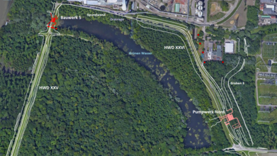 Zur Regulierung des Wasserzu- bzw. Abflusses werden unter anderem am „Panzergraben“ und am Düker unter der Hafeneinfahrt in Karlsruhe weitere Anpassungsmaßnahmen vorgenommen.
