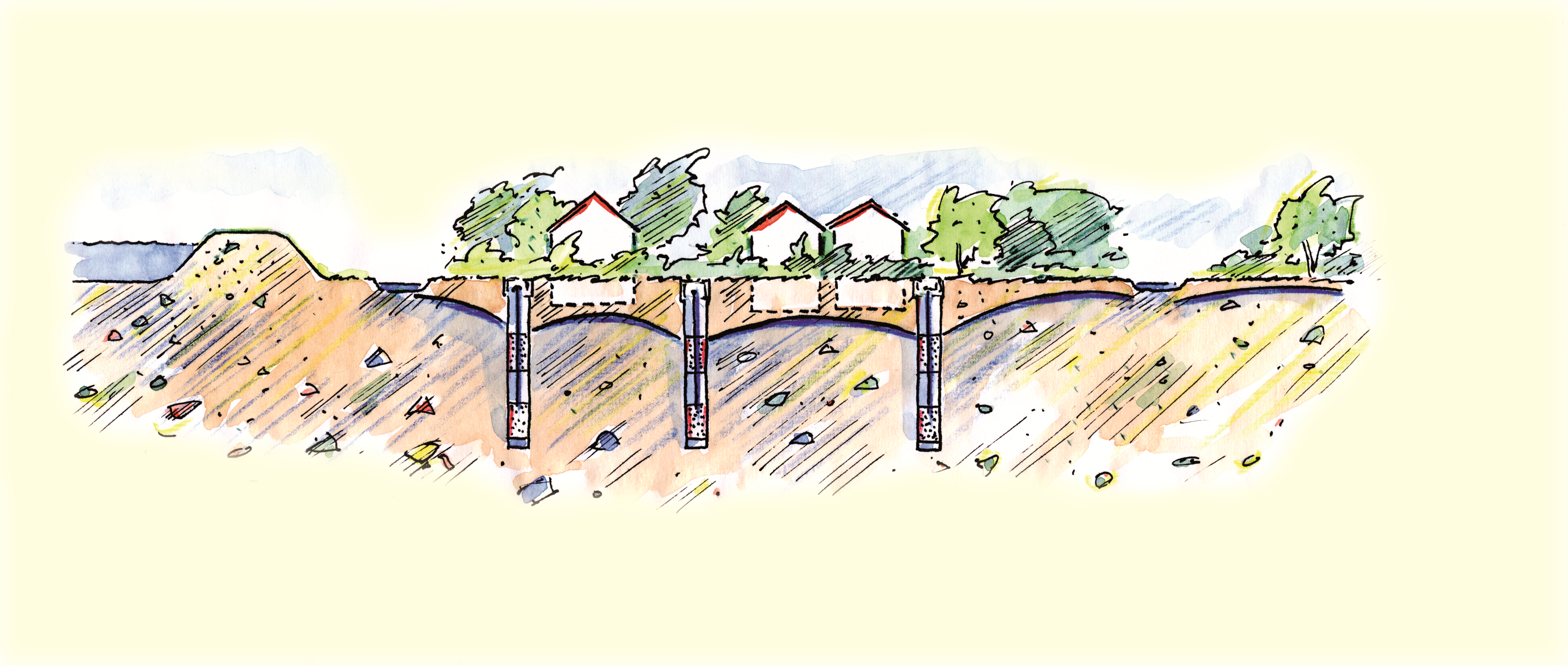 Lage und Ausbau der Schutzbrunnen werden so gewählt, dass in der Nähe gelegene Gebäude nicht beeinträchtigt werden.