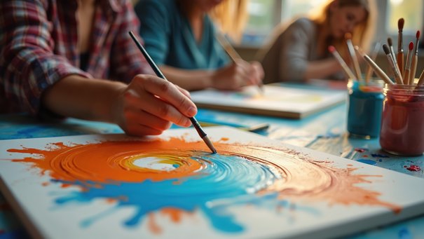Ein abstrakt gemales Gemälde mit einer Silouette einer Stadt
