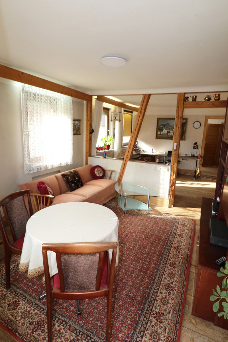 In der zweiten Wohnung, bestehend aus 3-Zimmern, findet sich ebenso ein Tageslicht-Bad mit Dusche, Toilette und Handwaschbecken, ein kleineres Arbeitszimmer, ein Schlafzimmer, eine Küche und ein gemütliches, durch eine Schiebetüre getrenntes Wohnzimmer.
