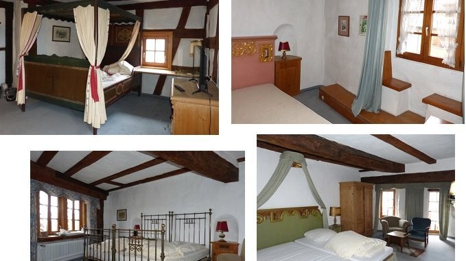 1. OG: Frühstücksraum (ca. 18 Sitzplätze), „Gotisches Stüble“ (ca. 4 Sitzplätze), Frühstücksküche, Rezeption, Büro, Toilette, 3 Einzelzimmer
