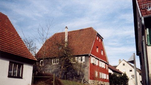 Zweigeschossiges, giebelständiges Haus über massivem das Gelände ausgleichendem Kellersockel mit Krüppelwalmdach.