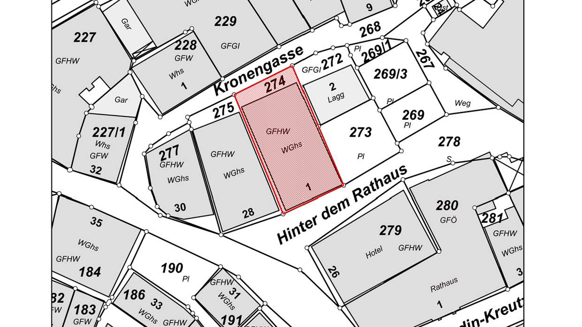 Eine Nutzung als Wohn- und Geschäftshaus mit 5 Wohnungen und einer Gewerbeeinheit im Erdgeschoss ist möglich. (Planungen zum Teil vorhanden)