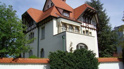 Ganz zentral liegt die denkmalgeschützte Villa, Bj. 1908, Historismus/Jugendstil, umrahmt von altem Baumbestand und umlaufender Mauer mit zwei Gartentürmchen. 329 m² Wohnfläche, ca. 93 m² Nutzfläche. 1.056 m² Grundstück. Massive Bauweise, Dachgeschoß in Holzfachwerkbauweise.