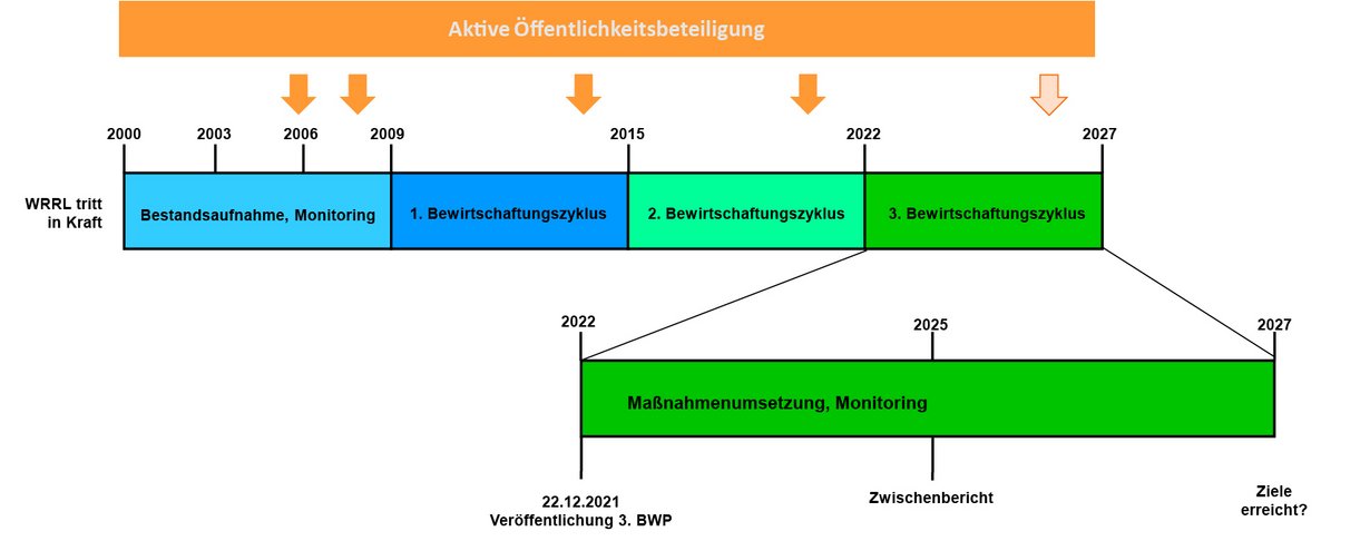 Die aktuellen Bewirtschaftungspläne und Maßnahmenprogramme wurden am 22.12.2015 veröffentlicht, sie werden in einem Sechs-Jahres-Turnus fortgeschrieben.